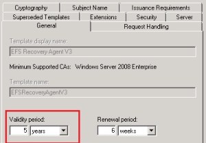Szerettem volna egy tanúsítványt 5 évre kiadni. Megnéztem a template-ek között, átállítottam a Validity Periodot, Apply, OK