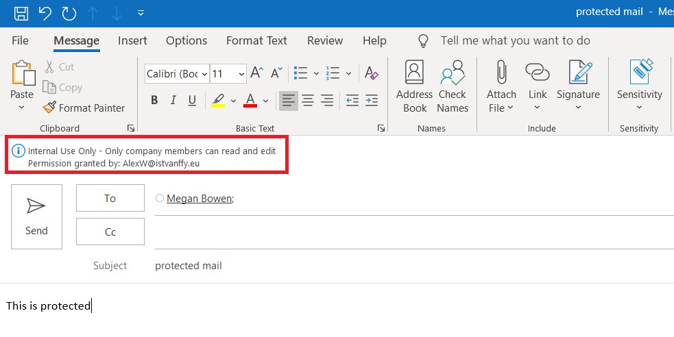 A fenti labelt alkalmazva az Office-dokumentumokra, majd elküldve pl. emailben a külsős partnernek, meglesz a megfelelő adat- és tartalomvédelem.