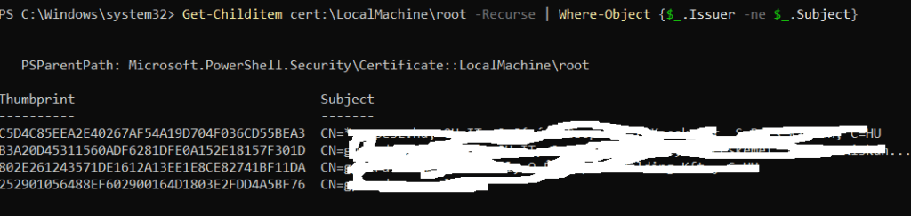 Powershellből le tudjuk kérni a nem oldavaló tanúsítványokat: