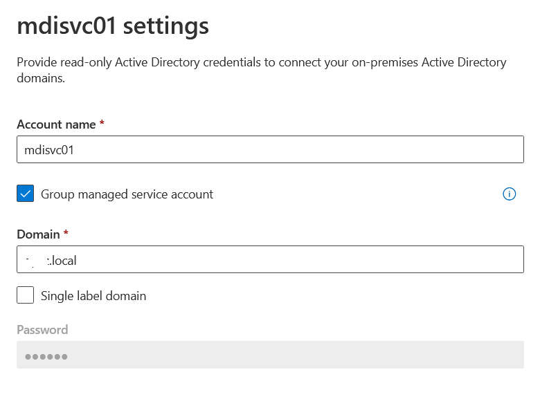 - Standard AD account: pl. contoso\mdidirservice. Előnye hogy könnyen és gyorsan beállítható, hátránya hogy a jelszavát időszakosan cserélni illik és tárolni kell.