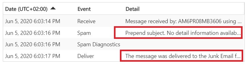 Röviden, ehhez a szabályhoz a Spam Confidence Level (SCL) érték 4-esre van állítva. Ha az EOP ennél magasabb értéket állított be SCL-nek (pl 5-ös) akkor hiába a prepend subject, ettől még a Junk Email folderbe fog kerülni a levél.