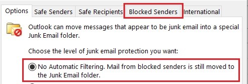 Nos, kikapcsoltuk a fenti hidden szabályt, most már tényleg nem kerülhet semmilyen levél a Junk Email folderbe (ez így nem igaz, hiszen a Blocked Senderektől érkező mailek akkor is itt landolnak majd)