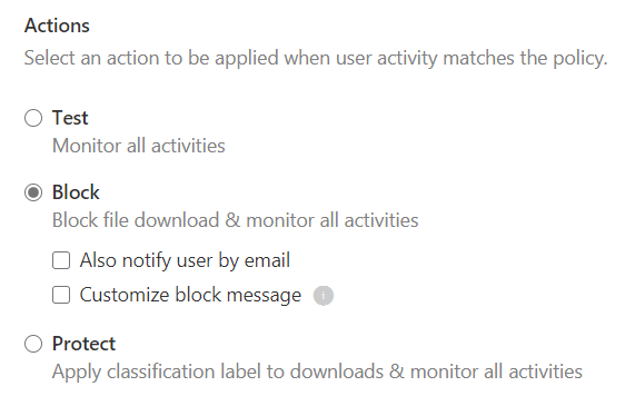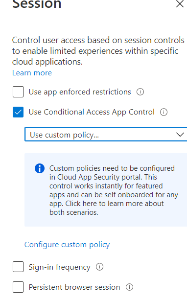 Amennyiben rendelkezünk Azure AD P1 vagy P2 és Cloud App Security licensszel (Microsoft E5, EMS E5 vagy Microsoft E5 Security), könnyen megakadályozhatjuk céges adatok letöltését, ha nem menedzselt eszközről lép be.