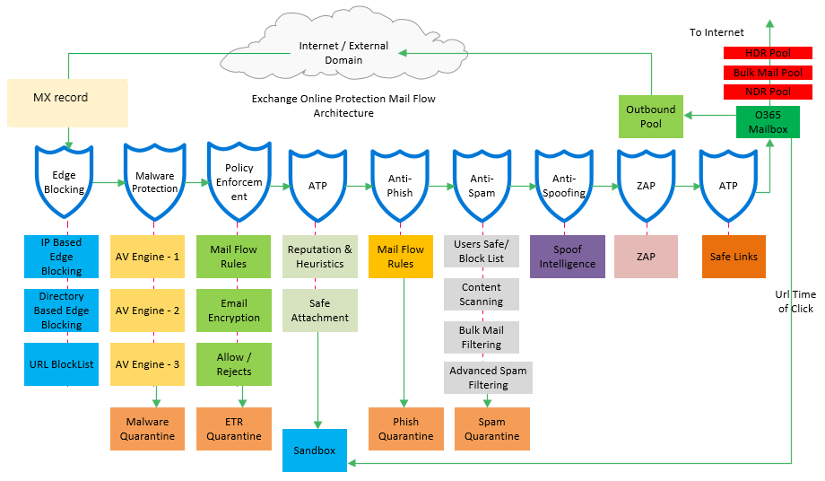 Egyedül a malware és high-confidence phishing szűrés valósul meg.