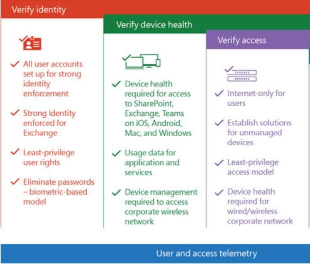 A Microsoft Zero Trust architektúráját a lenti ábra szemlélteti: