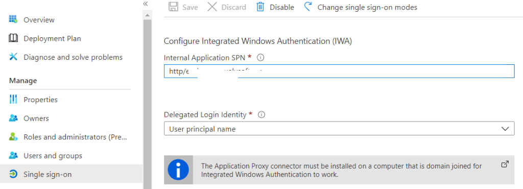 Itt meg kell adnunk az on-premise környezetben beállított SPN értékét (lásd később)