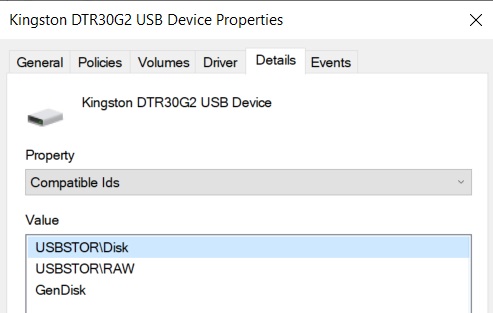 Ahogy látható, a Device Instace ID a legerősebb, ez jelenti magát az adott USB-eszközt. Ilyen példa a USBSTOR\DISK&VEN_KINGSTON&PROD_DTR30G2&REV_PMAP\001A92053F1CBF9161021EF9&0